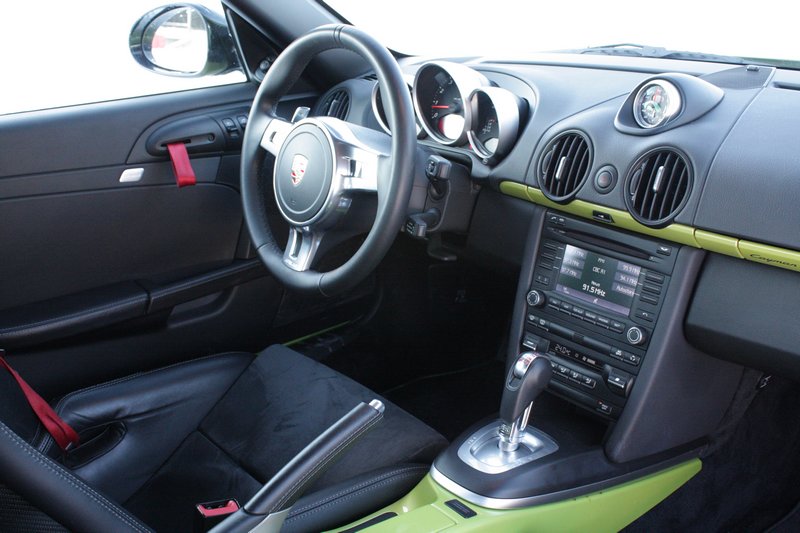 Weight-saving measures like eliminating the radio and air conditioning (both are optional), reduced sound insulation and fabric pulls in place of interior door handles, and aluminum door skins shave about 25 kg (55 lbs) from the car’s curb weight. A lowered suspension and aerodynamic tweaks improve the car’s high-speed stability, while a limited-slip differential puts power to pavement as efficiently as possible. Oh, and speaking of power, the Cayman R’s 3.4-litre engine makes 330 horsepower, 10 more than the Cayman S (the base Cayman gets 265 from its 2.9-litre motor). The extra power and reduced weight combine to cut 0.2 seconds off the car’s zero-to-100 km/h acceleration time.