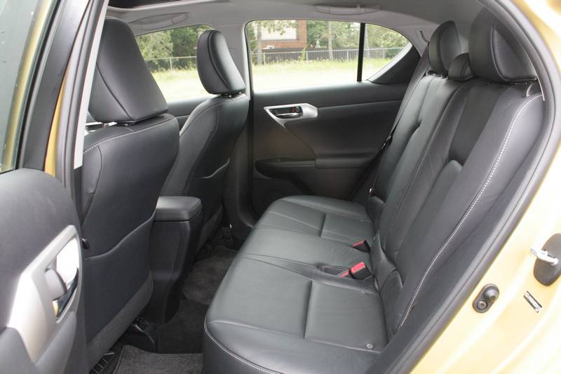 Interior finishings look and feel like quality, with the exception of the speaker covers in the dash top, which didn’t fit flush with the rest of the dash panel. But that’s a relatively minor thing in an otherwise nicely put-together car. The CT does away with the Prius’ high-tech interior look, presenting analog gauges for speed, fuel and a third gauge that can be toggled between a hybrid system power display or a more traditional tachometer, which is switched to automagically when sport mode is selected.